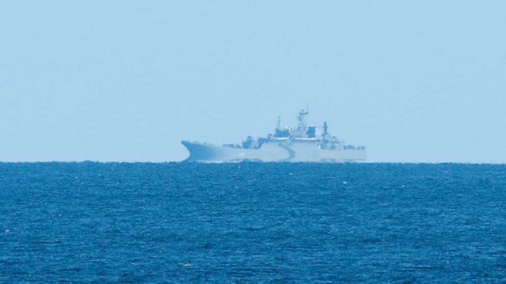 Российский десантный корабль у немецкого побережья вызывает повышенное внимание